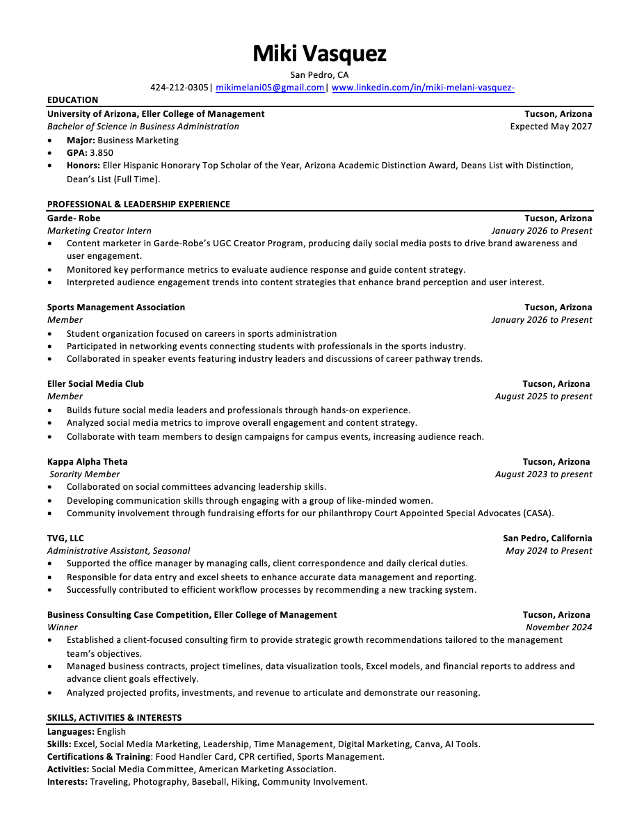 RESUME View my resume to see how my academic achievements, leadership, and hands on marketing experience come together! Download Here Download Here